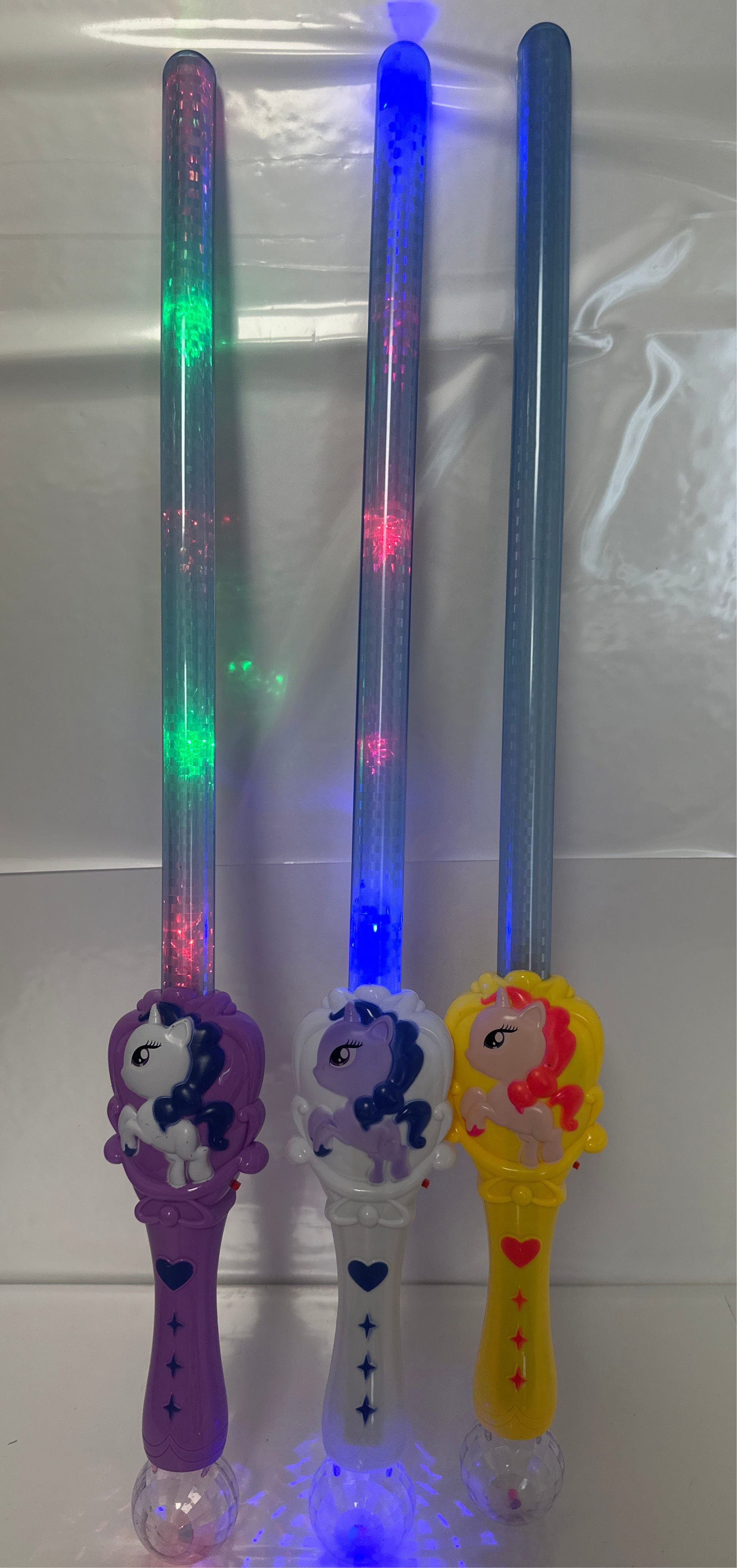Bring magic to playtime with this Light Up Sword featuring a charming unicorn on the handle. Its glowing blade captivates kids while sparking their imagination, perfect for imaginative adventures and nighttime fun. Durable and eye-catching, this sword adds excitement to any costume or party. Ignite creativity and joy with this enchanting light-up unicorn sword.