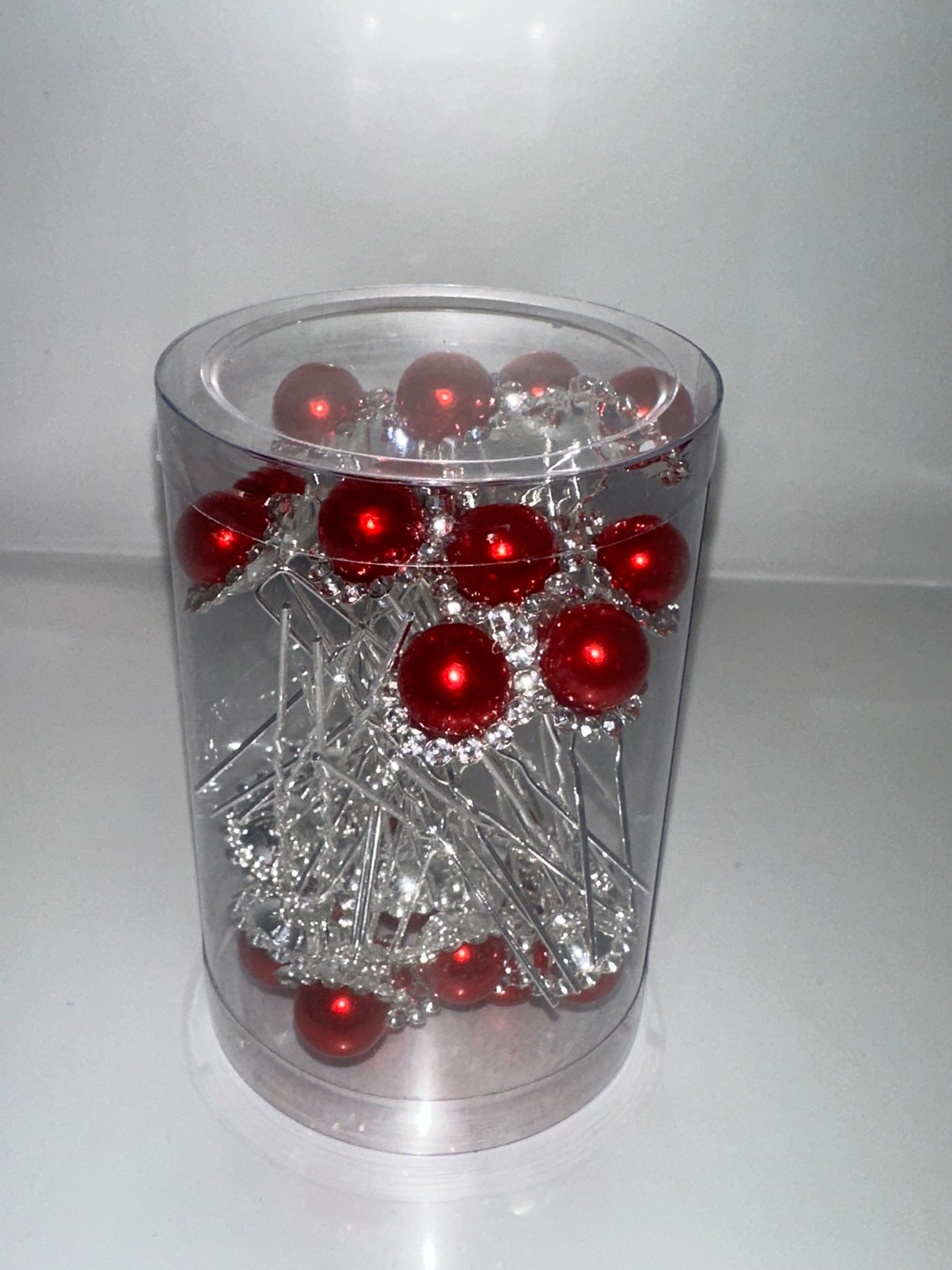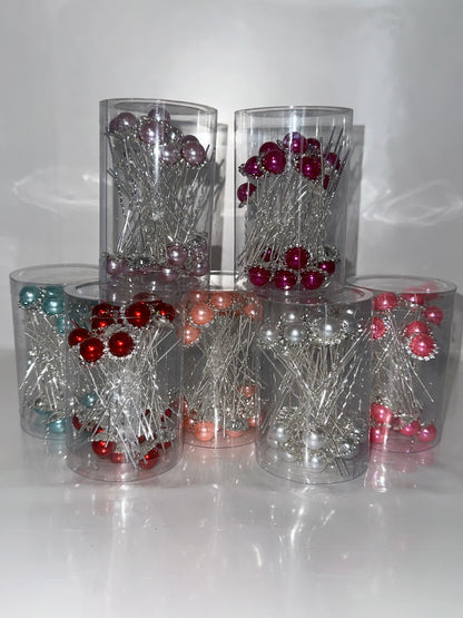 Enhance your floral arrangements with Flower Pins. Each cylinder container contains 24 pins in a variety of colors, making it perfect for any occasion. Add a unique touch to your flower decorations with these expertly crafted pins.