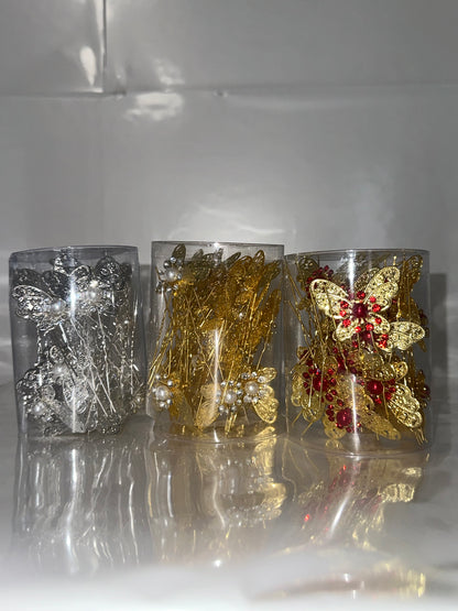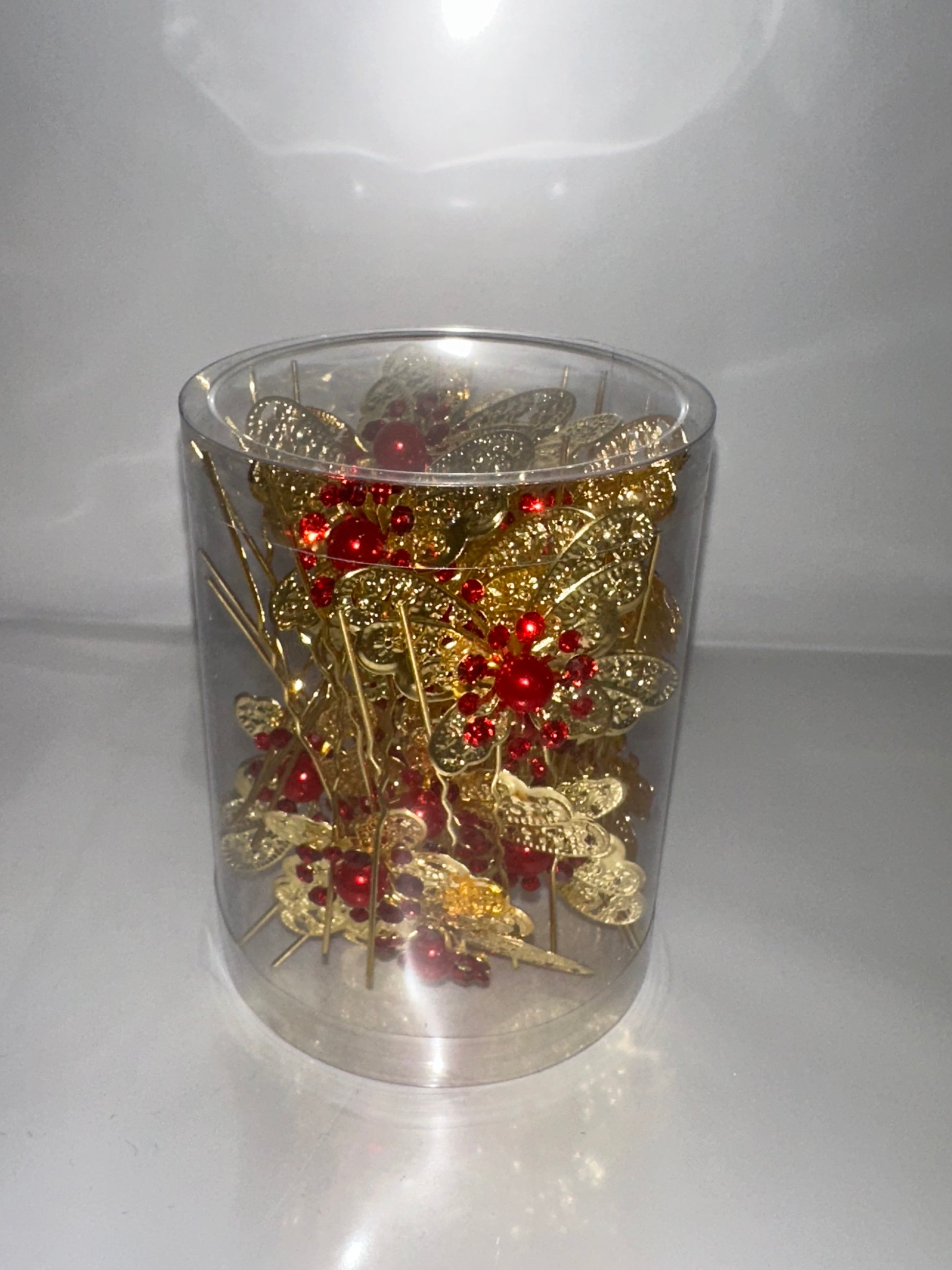 Enhance your floral arrangements with Flower Pins. Each cylinder container contains 24 pins in a variety of colors silver, gold, making it perfect for any occasion. Add a unique touch to your flower decorations with these expertly crafted pins.