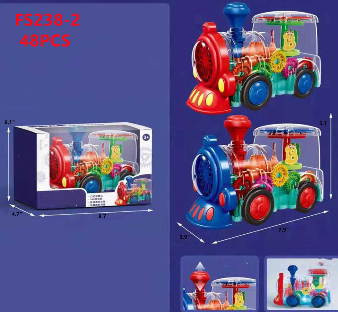 Learn how gears work with Gear Train #FS238-2! This fun toy train features a clear body that allows you to see the gears in action, accompanied by lights and music for an engaging experience. Perfect for kids and adults alike to explore the mechanics of gears.
