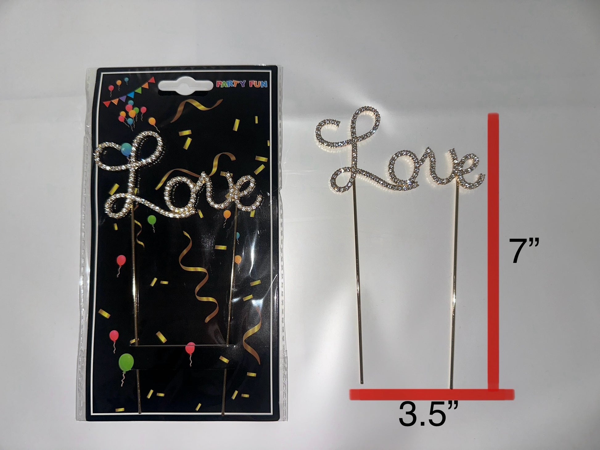 Add a touch of romance with the HG-33 Love Topper. Made of metal with the word "love" in elegant script, this topper is perfect for flower bouquets or cake decorations. Expertly crafted for a professional finish, it will elevate any special occasion.