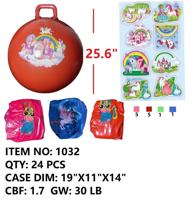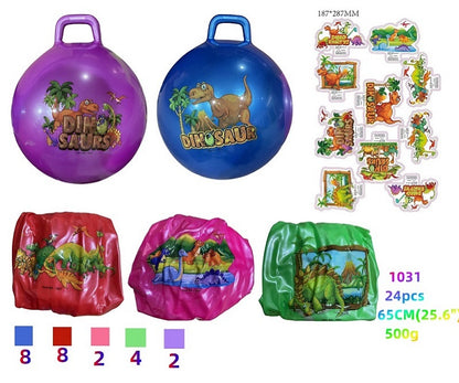 The Jumping Ball is a fun and interactive toy for kids. When inflated to its size of 25.6", it allows children to jump and play. Encouraging physical activity and coordination, this durable ball is a must-have for any active child. We have two styles to choose from Unicorn and Dinosaur all in assorted colors.