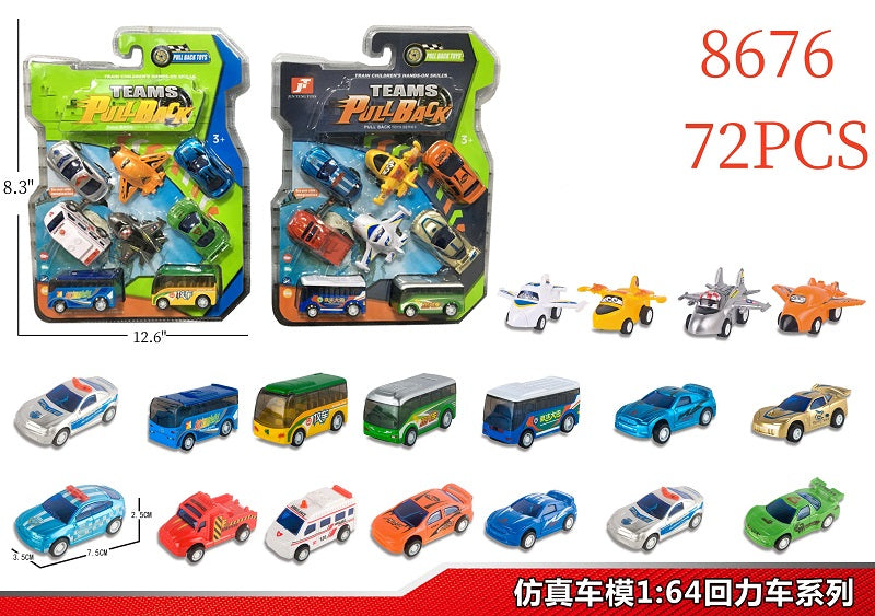 Unleash your child's imagination with Teams PullBack #8676. This pack includes 8 small cars in various designs - from cars to buses to airplanes, all with pull back action. Perfect for hours of fun, creativity, and motor skills development.